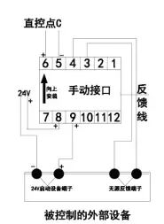 手動(dòng)接口為多線模塊,不用編碼,主機(jī)上的每個(gè)直控點(diǎn)都對(duì)應(yīng)一個(gè)手動(dòng)接口,直接從主機(jī)布線到現(xiàn)場(chǎng)中間不連接任何設(shè)備,5、6端子要分極性