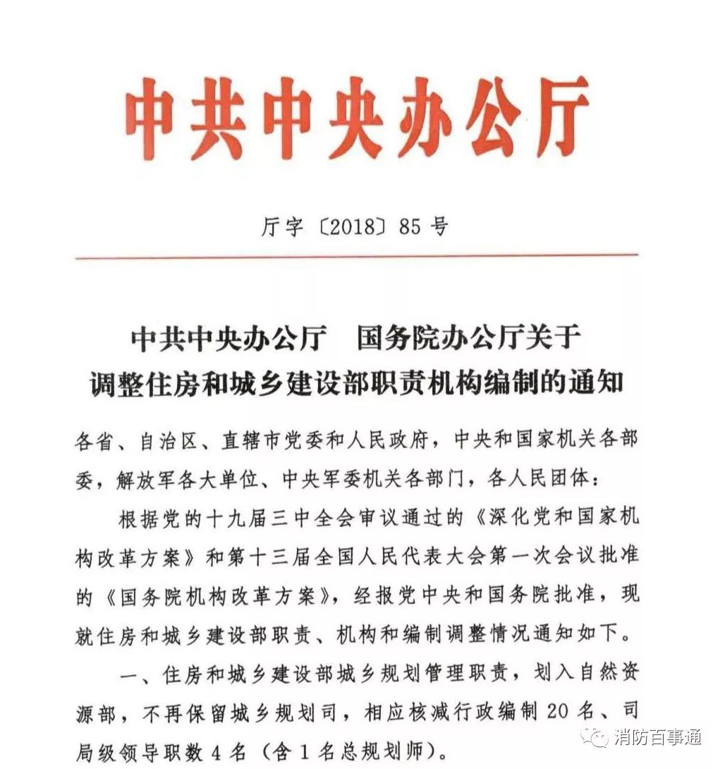 此前中央辦公廳曾正式發(fā)文,將公安部指導(dǎo)建設(shè)工程消防設(shè)計(jì)審查職責(zé)劃入住房和城鄉(xiāng)建設(shè)部,涉及消防部隊(duì)相關(guān)人員編制的劃轉(zhuǎn)待轉(zhuǎn)隸后另行核定。