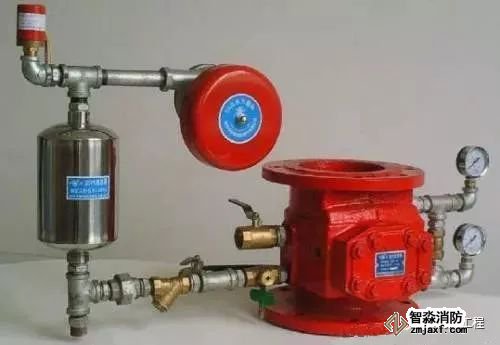 2. 濕式報警閥與水流指示有些不同,如果噴淋管道中如果水在流動,管道原有的靜壓會發生變化,會激發水力警鈴報警(它的原理可以參看一些閥門說明書),且壓力開關動作,從而來啟動噴淋水泵。