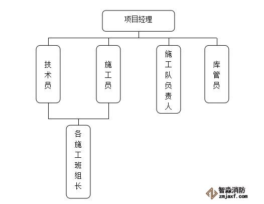 項目部應設置項目經理、技術員、安全員、庫管員等人員。具體組織機構如下圖: