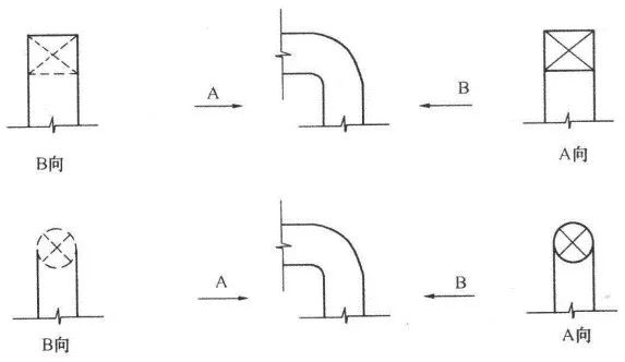 雙線管道轉向的畫法: