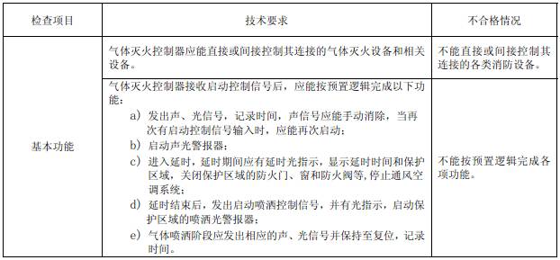b. 通過啟動和停止按鍵(按鈕)使氣體滅火控制器接收啟動控制信號后,觀察并記錄氣體滅火控制器狀態(tài)(啟動控制信號、延時信號、啟動噴灑控制信號、氣體噴灑信號)、顯示延時時間和保護(hù)區(qū)域、負(fù)載啟動、記錄時間情況并檢查試樣是否能按預(yù)置邏輯工作。