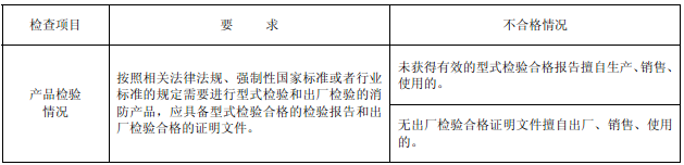 火災(zāi)報警設(shè)備的產(chǎn)品質(zhì)量應(yīng)當(dāng)按照相關(guān)法律法規(guī)、強制性國家標(biāo)準(zhǔn)或者行業(yè)標(biāo)準(zhǔn)的規(guī)定,經(jīng)型式檢驗和出廠檢驗合格。產(chǎn)品檢驗情況檢查項目、要求及不合格情況見表2。