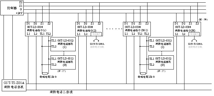 GST-LD-8304消防電話接口系統(tǒng)接線圖