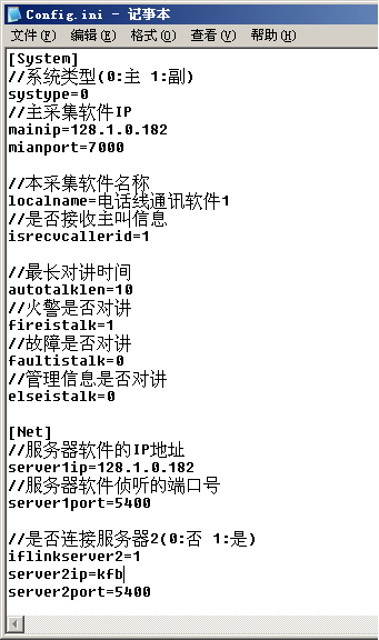 配置后臺控制軟件后打開c:program files GSTNet_ClientFire目錄下的配置文件config.ini,其中的設置項有: