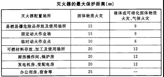 (4)滅火器的最大保護距離應(yīng)符合下表的規(guī)定。