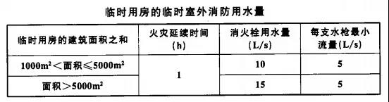 5、臨時用房的臨時室外消防用水量不應(yīng)小于下表規(guī)定。