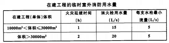 6、在建工程的臨時室外消防用水量不應(yīng)小于下表的規(guī)定。