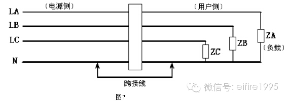 對于線路是否共零有一簡單檢查方法,如圖7在穿過互感器的零線上,在互感器外臨時跨接一根約12#的銅導(dǎo)線,長約1 米,要求接觸良好。