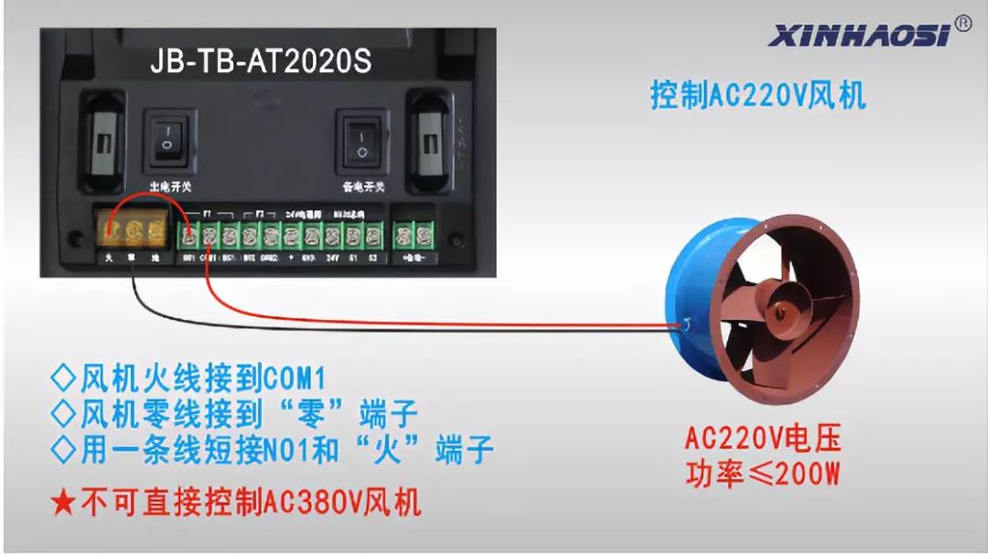 對于外控設備,我們控制器上都有無源開關量的接線端,按照下圖所示方式接線即可(其他總線制控制器請參照JB-TB-AT2020S接線)。