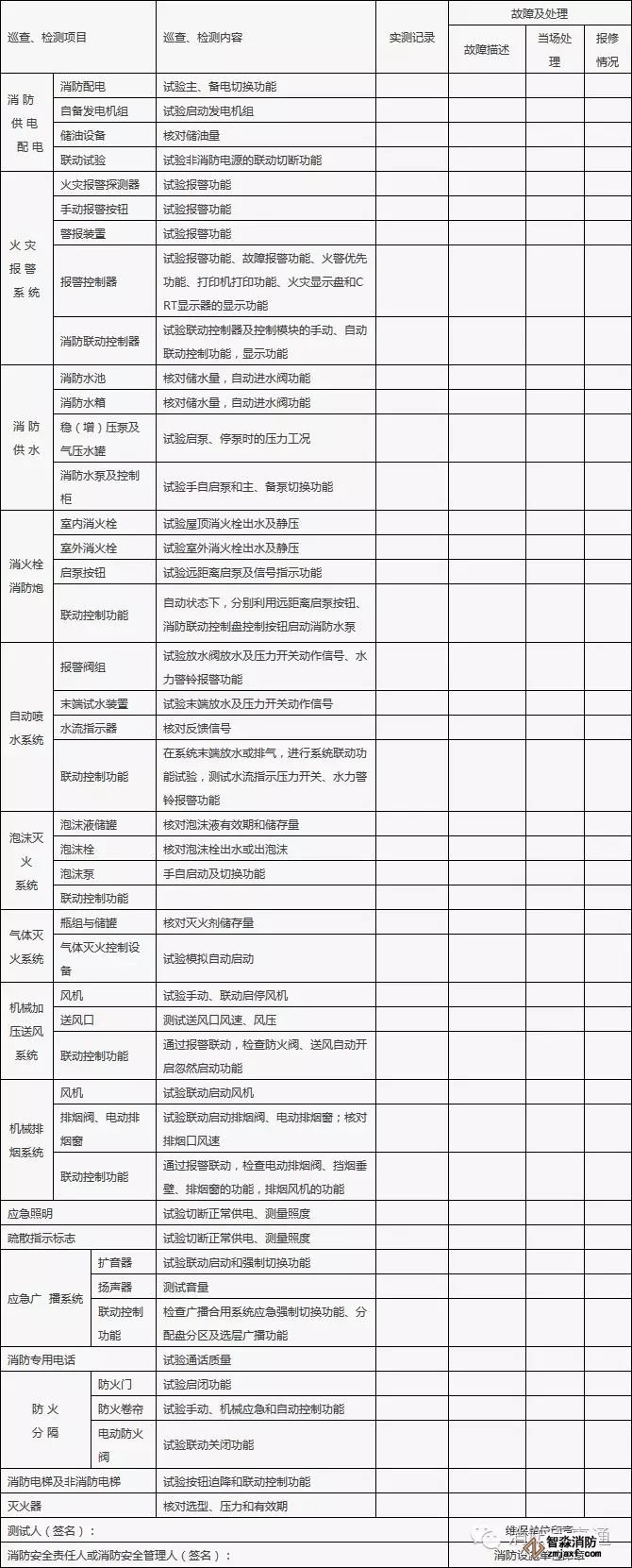 3、發現的問題或存在故障在“實測記錄”欄中填寫,并及時處置;當場不能處置的要填報《建筑消防設施故障處理記錄》。