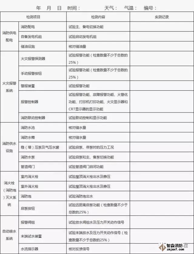 1、建筑消防設(shè)施的單項檢查應(yīng)當每月至少一次,并填表。