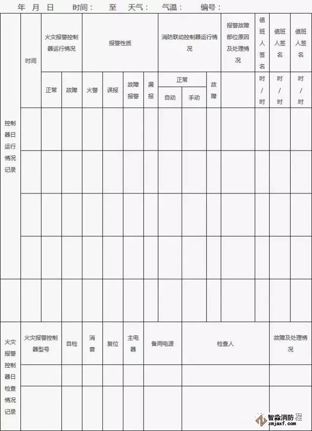 2、消防控制室值班人員應(yīng)當在崗在位,認真記錄控制器日行情況,每日檢查火災報警控制器的自檢、消音、復位功能以及主備電源切換規(guī)能,并填寫附表的相關(guān)內(nèi)容。