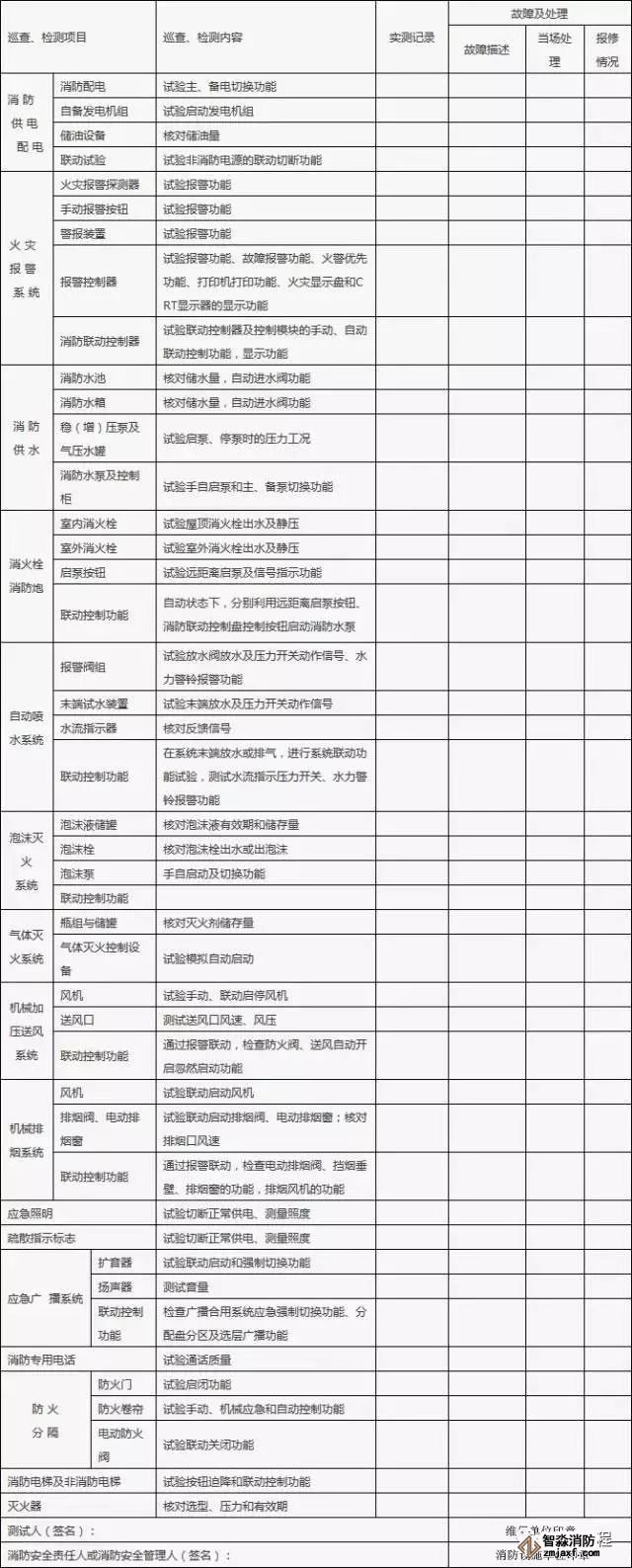4、故障排除后,應(yīng)由消防安全管理人簽字認可,故障處理記錄檔備查。