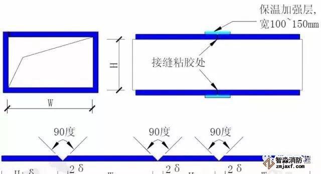 3、方形風(fēng)管保溫900轉(zhuǎn)角 處采用45度拼裝,保溫板 裁900角時(shí)不要割透,預(yù)留 5mm厚作為整體轉(zhuǎn)角用, 然后用膠水進(jìn)行拼縫。