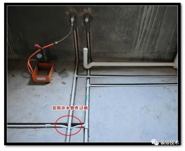 廚房水管布局,宜冷水管作過橋。同時下水管口都應該堵上,防止施工中雜物掉入引起堵塞