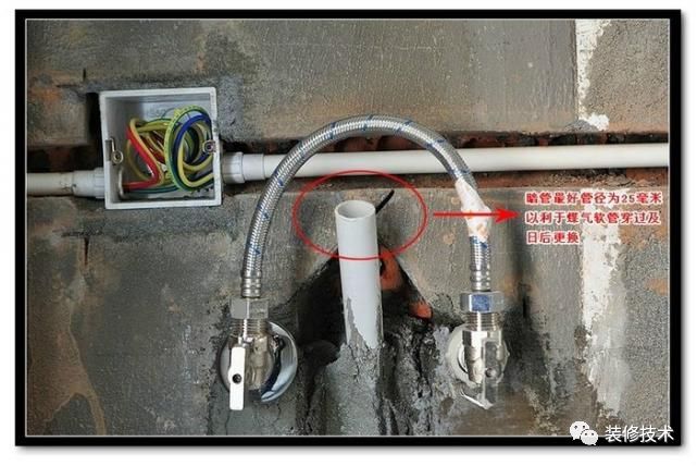 拉近看,暗埋管管徑最好為25mm,以利煤氣軟管穿過及日后換軟管方便。