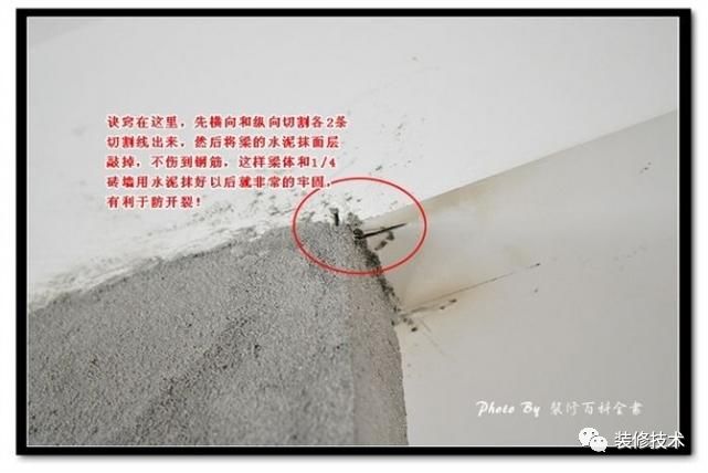決竅在這里,兩條切割線。梁體與墻結合部要敲掉一定抹面層