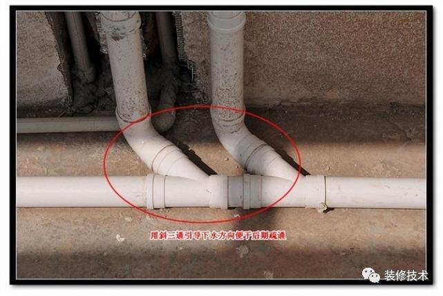 用上斜三通既引導下水方向,又便于后期疏通