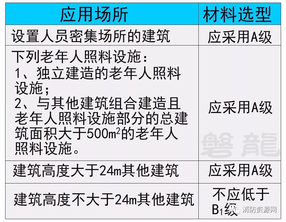 1、根據(jù)《建筑材料及制品燃燒性能分級》(GB8624)要求,建筑材料及制品的燃燒性能,可分為不燃材料(A)、難燃材料(B1)、可燃材料(B2)和易燃材料(B3)四個等級。建筑的內(nèi)、外保溫系統(tǒng),宜采用燃燒性能為A級的保溫材料,不宜采用B2級保溫材料,嚴禁采用B3級保溫材料。(6.7.1)