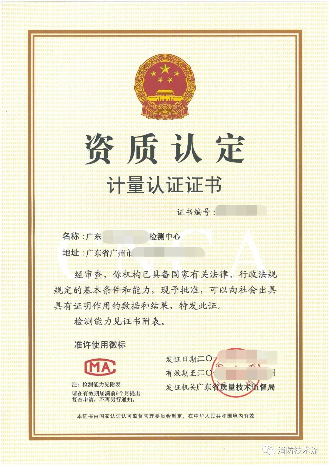 CMA認證不再對消防設施維護保養檢測等機構頒發資質證書