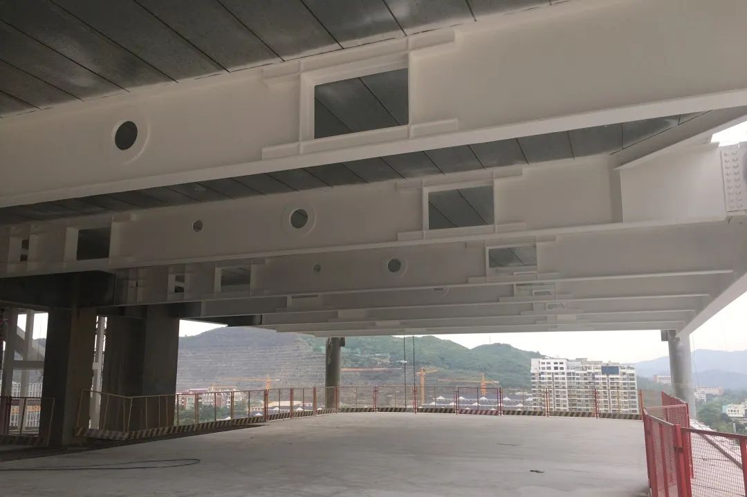 這座“天空之城”位于深圳市南山區,是深圳大疆公司在華南區域的總部大樓,中建五局安裝公司承接機電安裝工程施工。“空中社區”式的懸浮玻璃雙塔結構、大跨度無柱空間、270°玻璃墻面、整體無吊頂設計,在為這座建筑賦予更多“未來感”的同時,對機電安裝施工提出了更高要求。