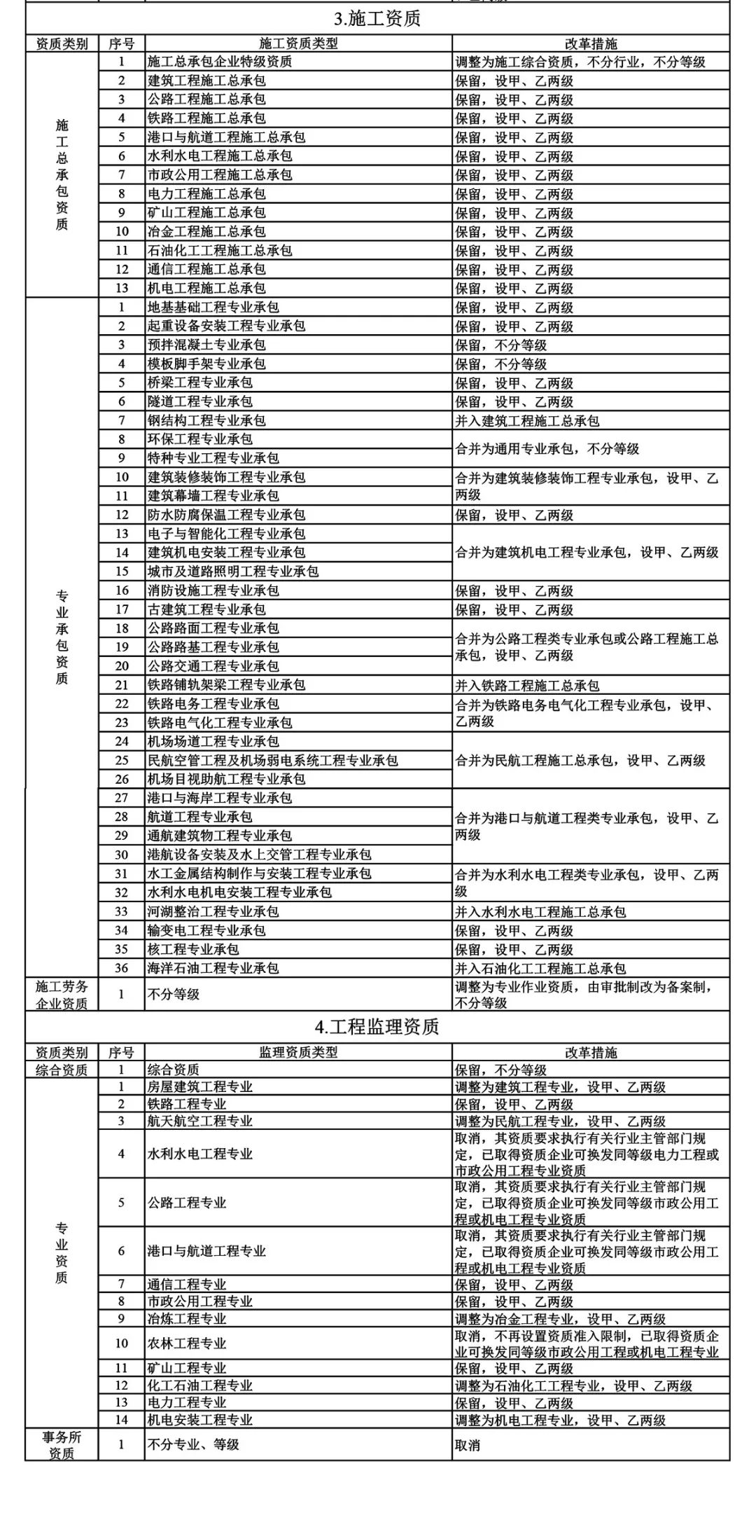 2.改革后建設(shè)工程企業(yè)資質(zhì)分類分級表