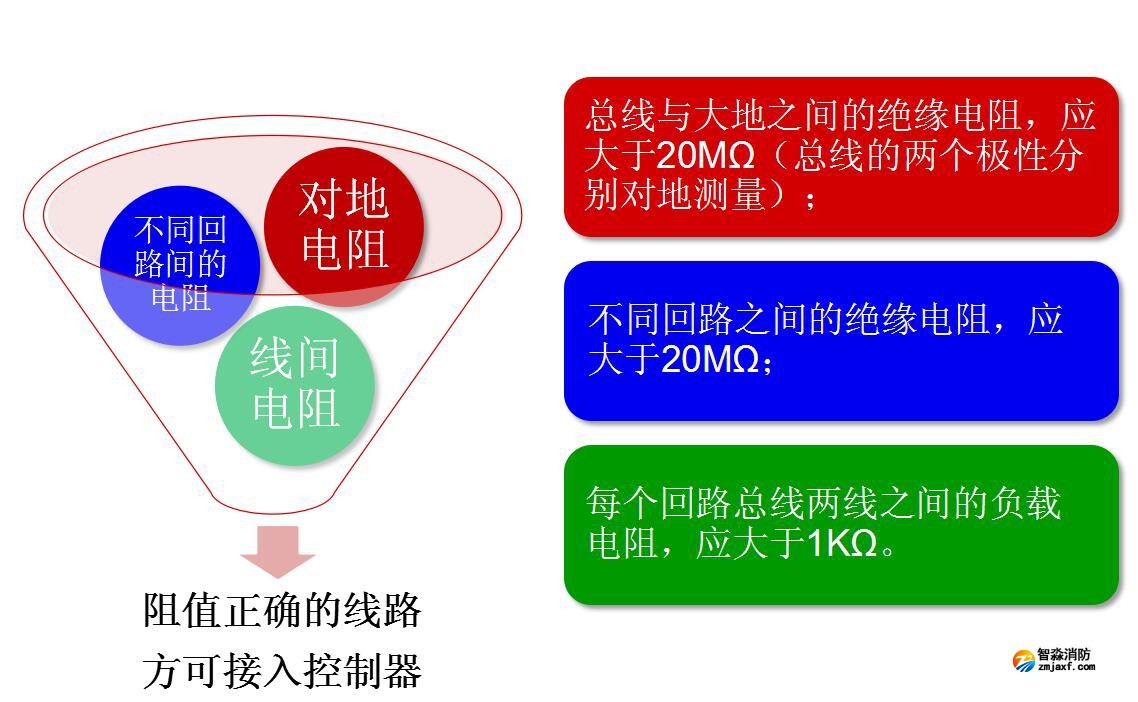 火災(zāi)自動報警系統(tǒng)導線敷設(shè)后,在安裝現(xiàn)場設(shè)備之前,應(yīng)對每回路的導線用500V的兆歐表(搖表)測量絕緣電阻,其對地絕緣電阻值不應(yīng)