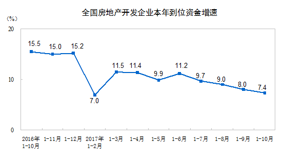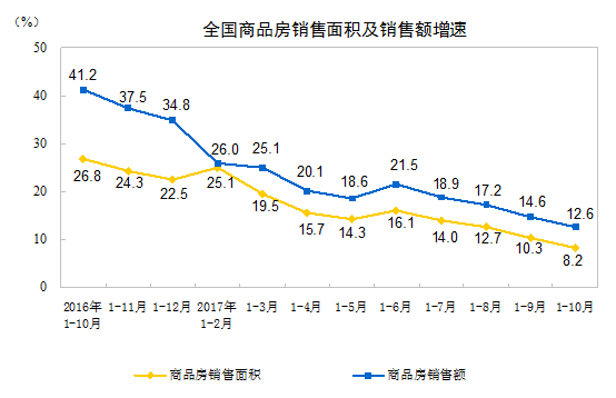 2017年1-10月份全國房地產開發(fā)投資和銷售情況;