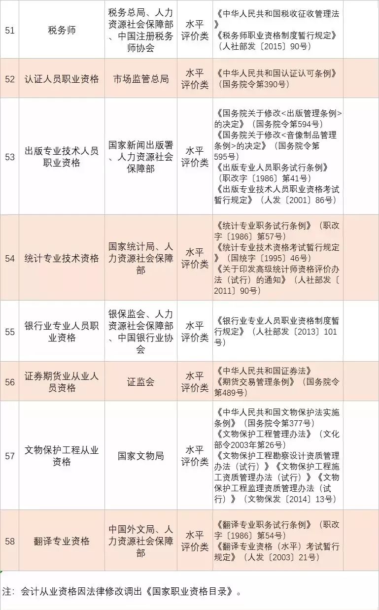 附:國家職業資格目錄(2019版)