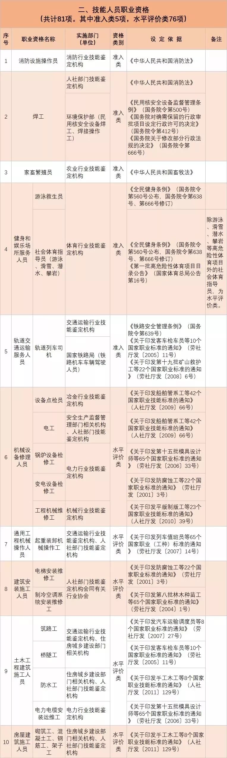 • 從2020年1月起,與公共安全、人身健康等密切相關的消防員、安檢員等7個工種依法調整為準入類職業資格外,用一年時間分步有序將其他水平評價類技能人員職業資格全部退出家職業資格目錄,不再由政府或其授權的單位認定發證;