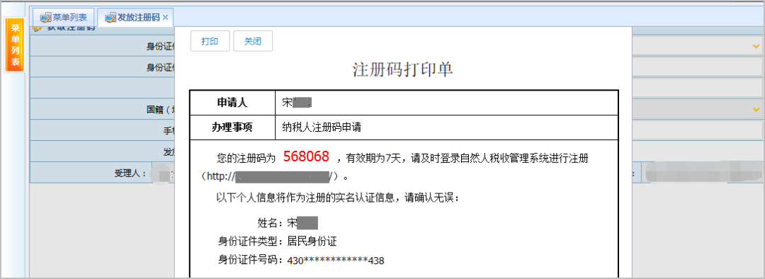 納稅人攜帶本人有效身份證件到辦稅服務(wù)廳獲取注冊碼,注冊碼有效期7天(注冊碼由6位的數(shù)字、字母隨機(jī)組成)。