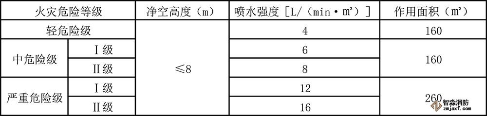 1. 干式系統的作用面積應按下表規定值的1.3倍確定。