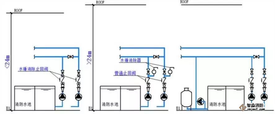 消防水泵出水管上的止回閥宜采用水錘消除止回閥,當(dāng)消防水泵供水高度超過24m時,應(yīng)采用水錘消除器。當(dāng)消防水泵出水管上設(shè)有囊式氣壓水罐時,可不設(shè)水錘消除設(shè)施。