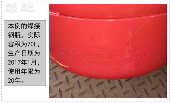 從示例照片可以看出,本鋼瓶為2017年4月進行的檢驗,下次檢驗日期為2020年4月: