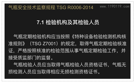 根據《氣瓶安全技術監察規程》規定,檢驗單位應符合以下要求: