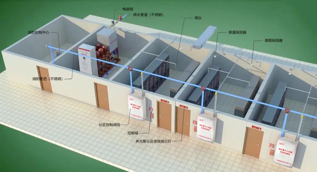 2)用于保護油浸變壓器室、渦輪機房、柴油發(fā)電機房、液壓站、潤滑油站、燃油鍋爐房等含有可燃液體的機械設備間時,系統(tǒng)的設計持續(xù)噴霧時間不應小于20min。